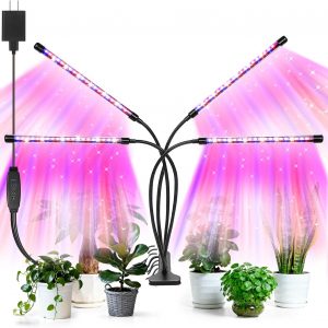 Led Grow Lights, 4 Heads Red Blue Plant Light with Clamp for Indoor Plants & Seed Starting, 10-Level Dimmable, Auto On Off, Timing 3 9 12Hrs