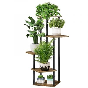 AZERPIAN Plant Stand 5 Tier Indoor Metal Flower Shelf for Multiple Plants Corner Tall Flower Holders for Patio Garden Living Room Balcony Bedroom, Black (5 Tier-Black)