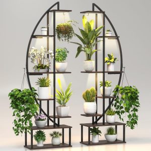 Plant Stand Shelf Rack Indoor with 6 Built in Grow Light, 7 Tiered 65″ Tall Black Large Lighted Half Moon Curved Plant Stand for Indoor Growing, 2 Pack Arch Sturdy High Herb Flower Shelving