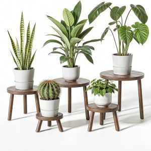 Delma Wood Plant Stands Indoor, 5-Pack Single Plant Stand for 6-12 Inch Pots, Mid-Century Modern Plant Stool, Tall Plant Stand for Large Plants for Living Room, Balcony, Office (Dark Brown, 5-Pack)