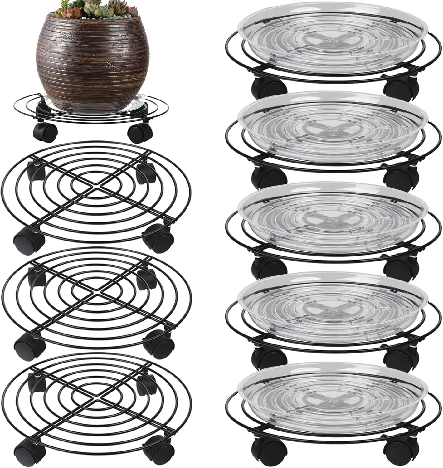 • Set of Eight Plant Caddies & Plant Saucers: The package will come to you with 8 packs of metal plant caddies of 13.8” in diameter and 8 packs of clear plant saucers in 12” for free. The plastic saucers will store the drainage water to keep the plant dolly and floor clean.