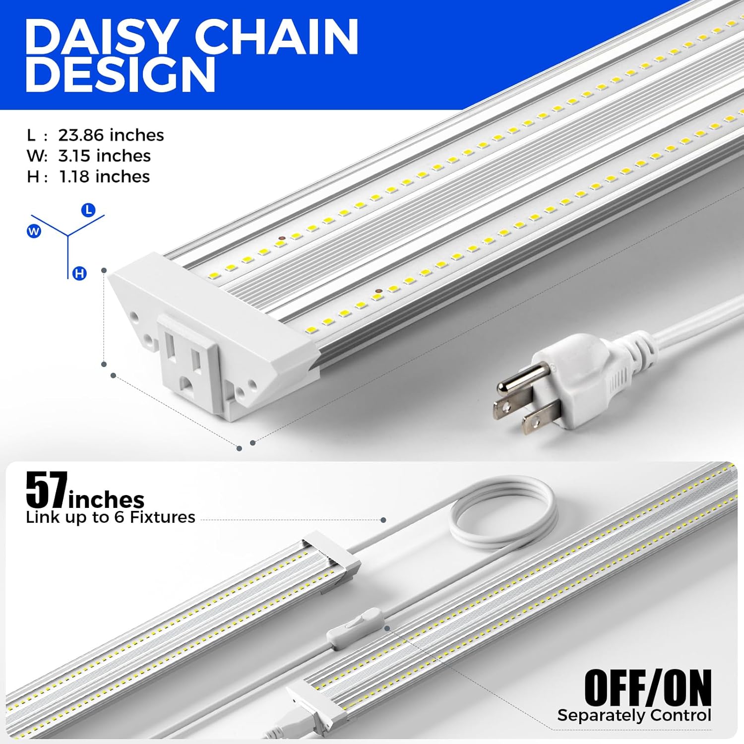 • Linkable Design & Full Light Coverage: The LED grow light supports daisy chaining up to 6 lights, each with 57 inches power cords and individual on/off switches for customized lighting. This flexible setup ensures comprehensive light coverage, making it ideal for indoor vegetable gardens