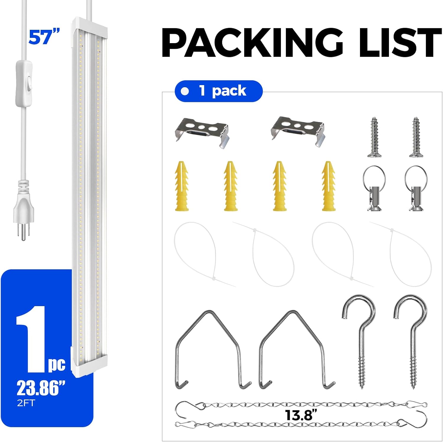 • Flexible & Easy Installation Methods: Choose Barrina TX36 full spectrum grow lights for multiple setups, including hanging and surface mounting. With included chains, hooks, anchors, cable ties, and clips, installation is quick and easy. Enjoy customizable lighting for a fast start in nurturing your indoor seedlings