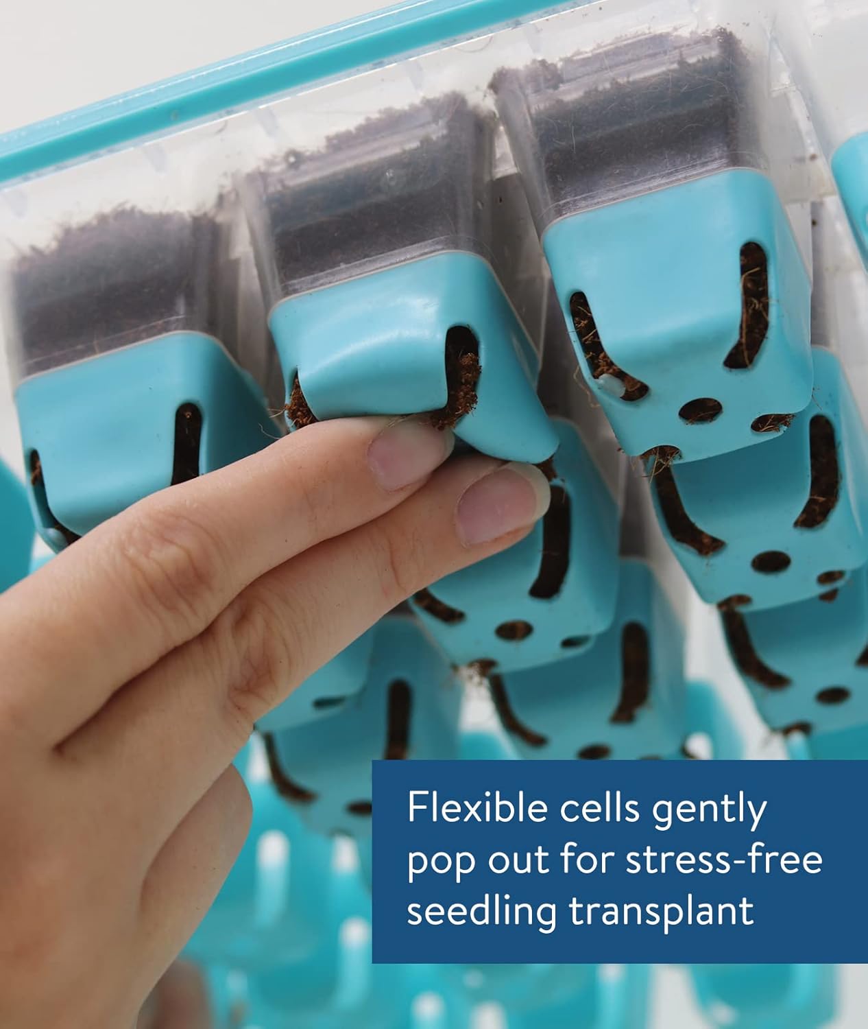 - SIMPLER TRANSPLANTING: Soft food-grade silicone cells cradle seedlings and gently flex to pop out when it’s time to transplant into your outdoor garden! This system is specially designed to reduce stress on your seedlings, so you don’t damage their roots. After transplanting, trays are easy to clean and reuse or simply store for next growing season. Top shelf dishwasher safe.