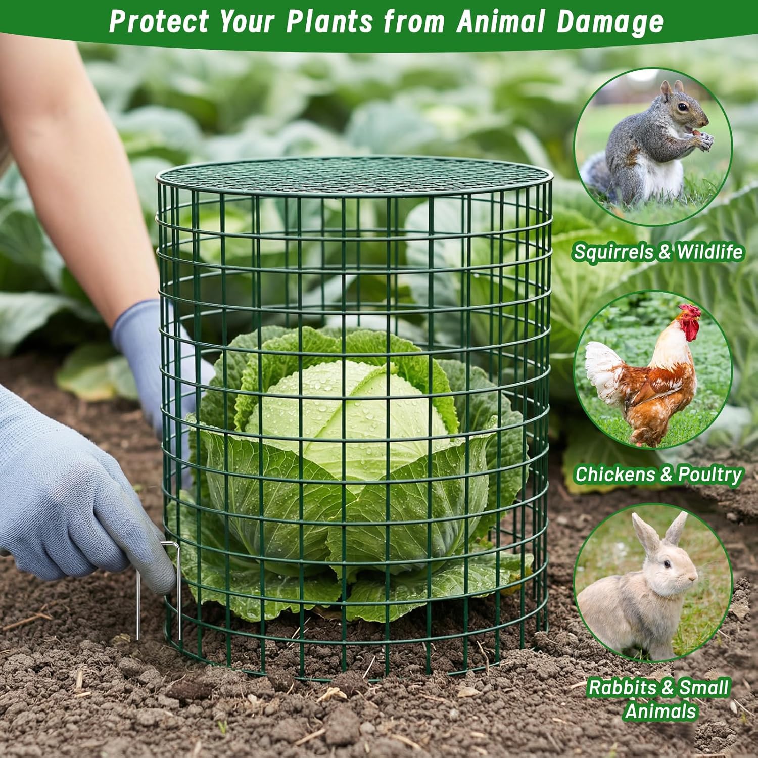 - 【Heavy-Duty Metal Mesh – Rustproof & Reusable】 Made of thick iron wire with a dark green powder-coated finish, these metal plant cages are smooth, sturdy and rust-resistant. The fine square mesh allows normal entry and exit of air, sunlight and rain while blocking small animals, creating durable plant covers that won’t deform and can be reused season after season as reliable plant protectors from animals