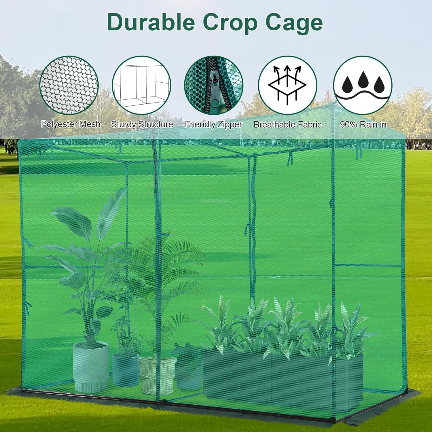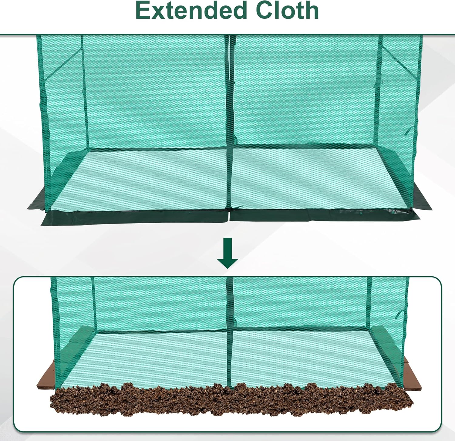 - Extended Cloth: In the bottom of the crop cage, the unique extended cloth is added that can be fixed or buried in the ground for prevent entering of some tiny animals or pests like the squirrel, rats and birds