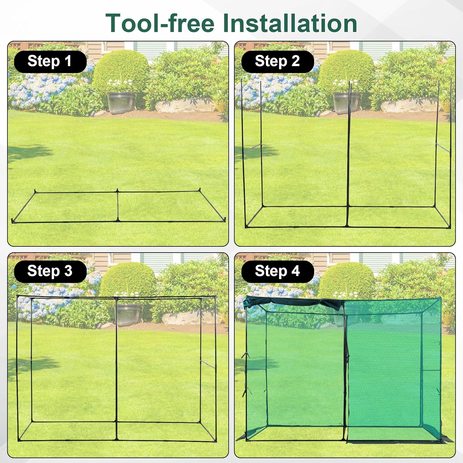 - Easy Installation: The steel tubes constitutes a stable structure with the plastic connectors. The garden cage is lightweight and easy to assemble, take down and store at the end of the season