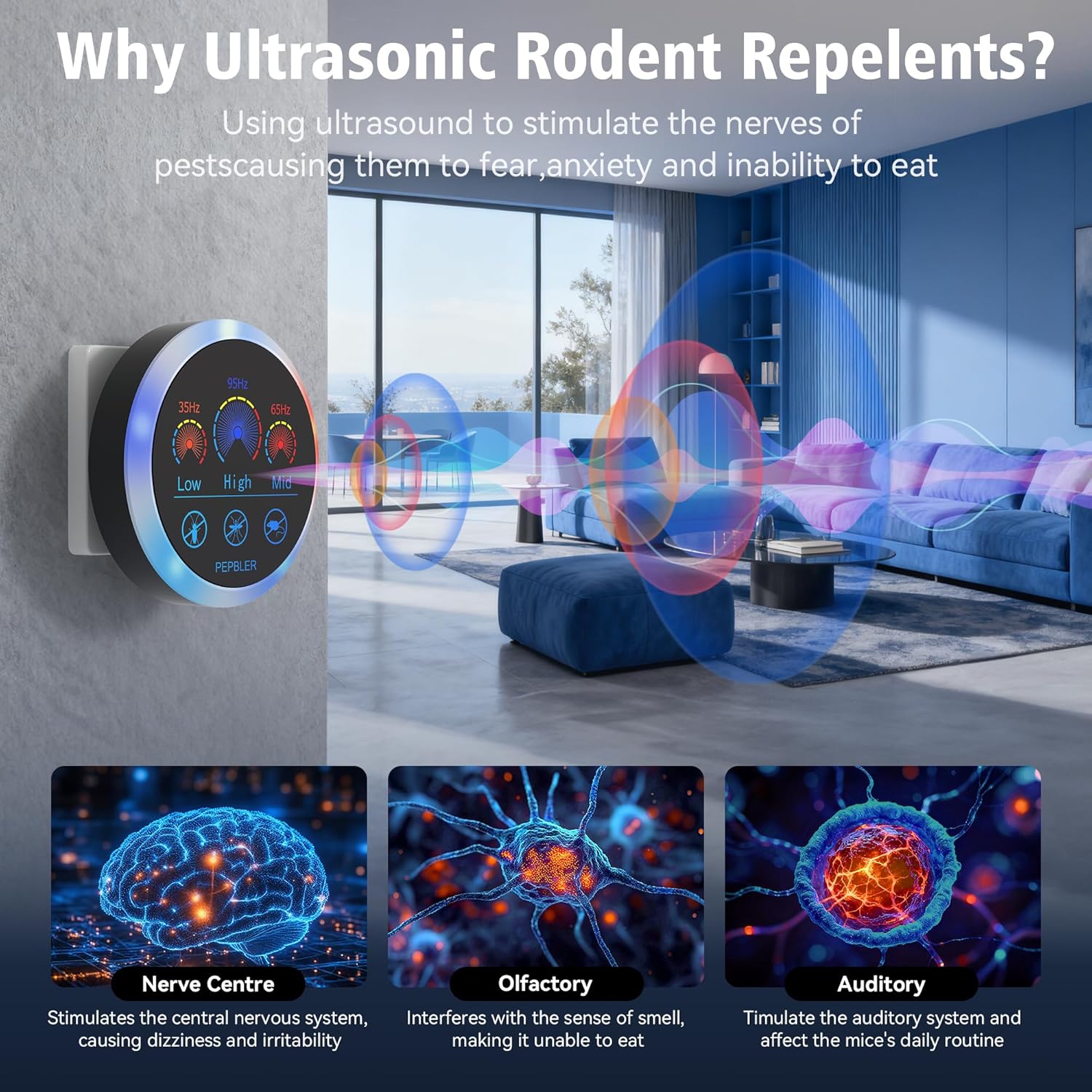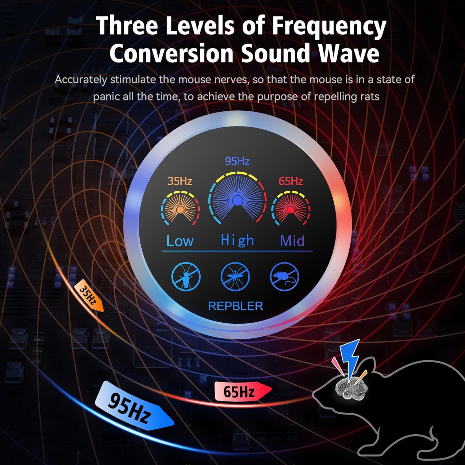 - 【FRIENDLY TO HUMANS & PETS】Rodent repellent uses ultrasonic and LED strobe lights to repel mice and pests, non-toxic, no traps, no need to clean up.100% friendly to people and pets