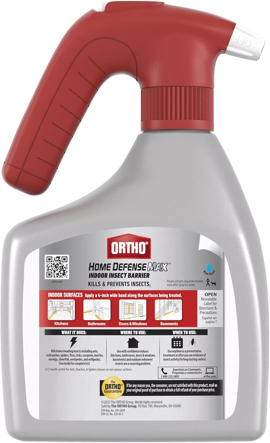 - Start killing ants, roaches, spiders, fleas and ticks with Ortho Home Defense Max Indoor Insect Barrier