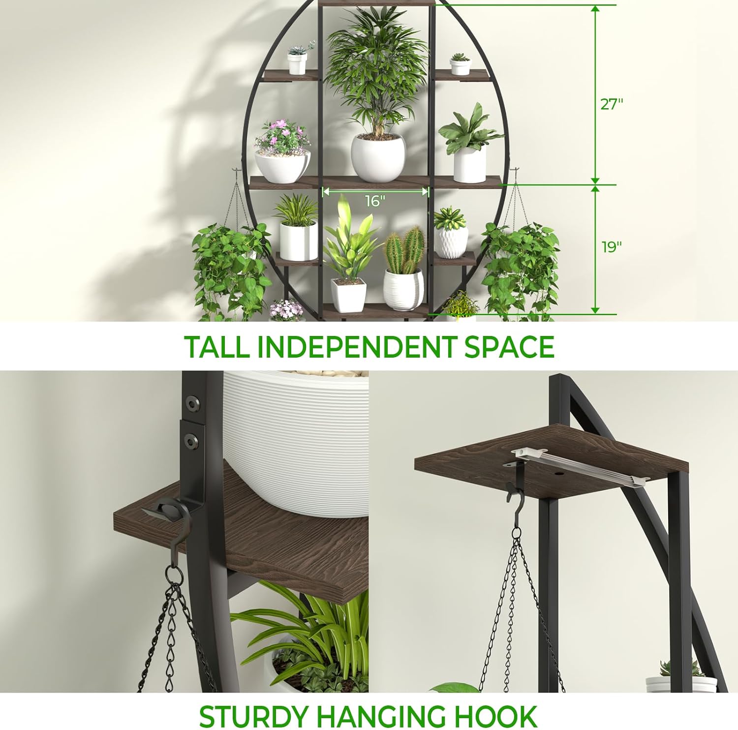 - ๐ชด ๐ญ๐ต” & ๐ฎ๐ณ” ๐ง๐ฎ๐น๐น ๐๐ป๐ฑ๐ฒ๐ฝ๐ฒ๐ป๐ฑ๐ฒ๐ป๐ ๐ฆ๐ฝ๐ฎ๐ฐ๐ฒ ๐ณ๐ผ๐ฟ ๐๐ถ๐ด ๐ฃ๐น๐ฎ๐ป๐๐: Each side of plant stand indoor includes independent 19″ and 27″ tall storage spaces to fit tall plants and the 2 sides can be easily connected to fit large plants. It holds up to 18 planters, plus other items like photos, artworks, books or garden tools.