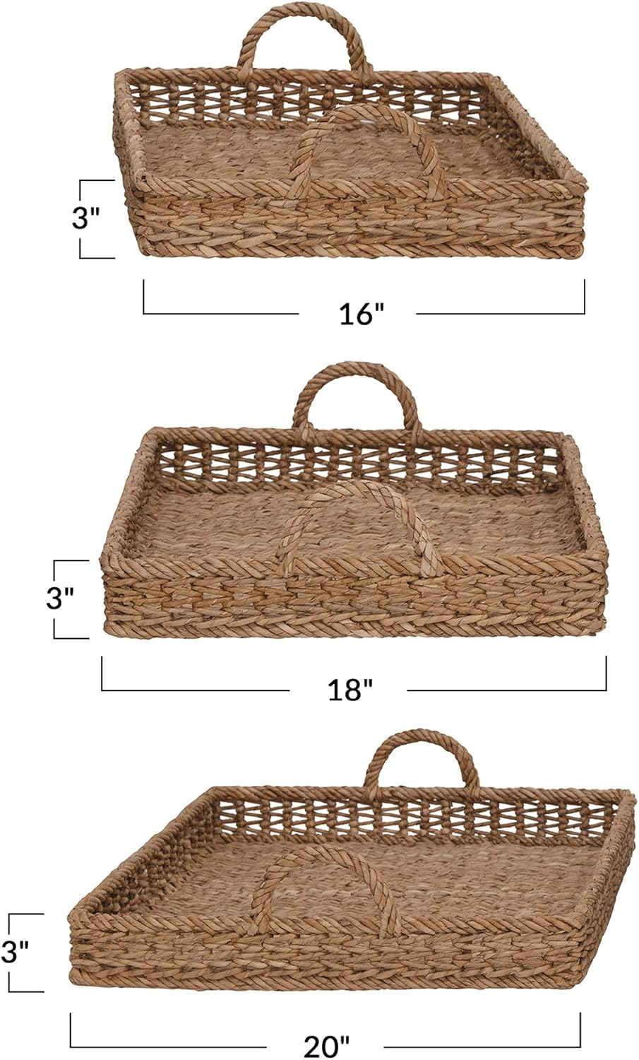 S/3 Decorative Water Hyacinth Tray