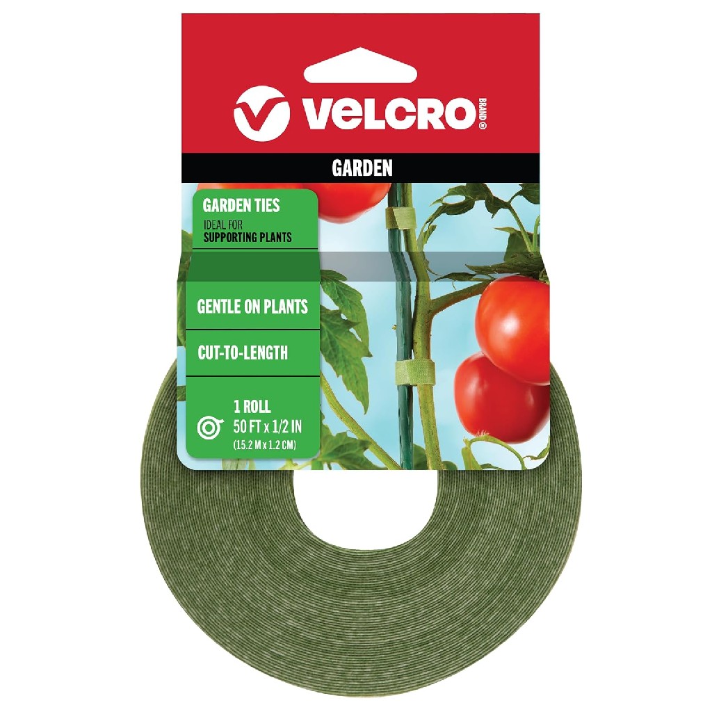 VELCRO Brand VEL-30071-USA ONE-WRAP Garden Ties | Plant Supports for Effective Growing | Strong Grips are Reusable and Adjustable | Cut-to-Length, 50 ft x 1/2 in, Green-Recycled Plastic