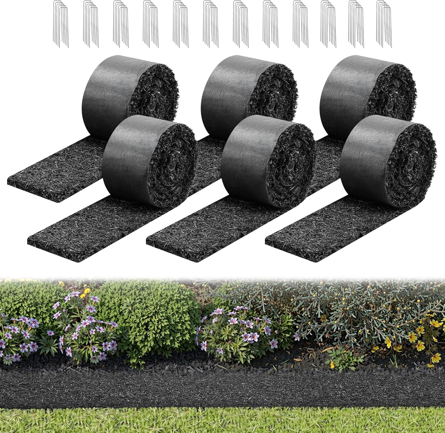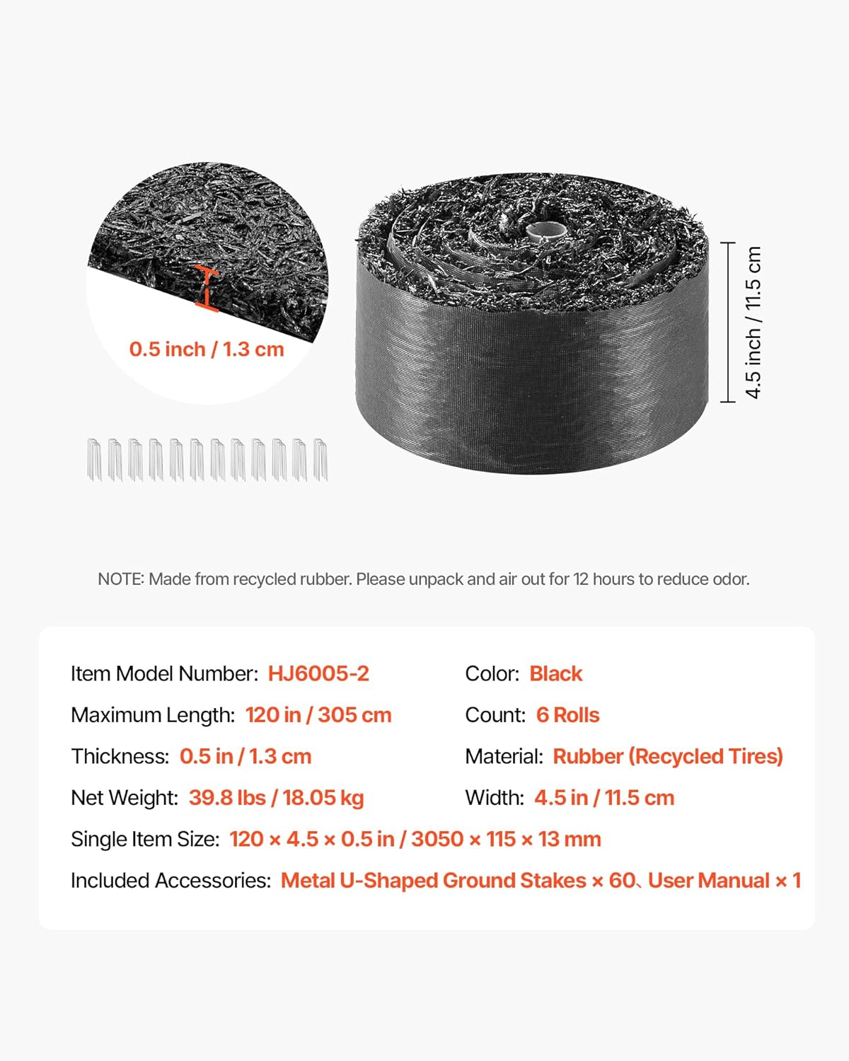 - Upgraded Durable Construction: This 6-pack 120 x 4.5 in/3050 x 115 mm rubber mulch mat (0.5 in thick) is made from 100% recycled rubber fiber with green-energy adhesive. Wear-resistant, weatherproof, and reinforced with backing to avoid tearing. No special maintenance required